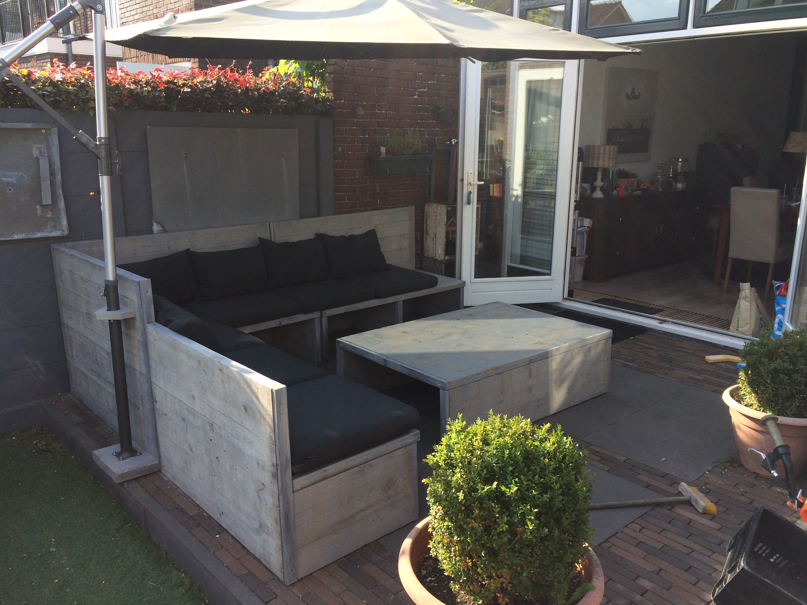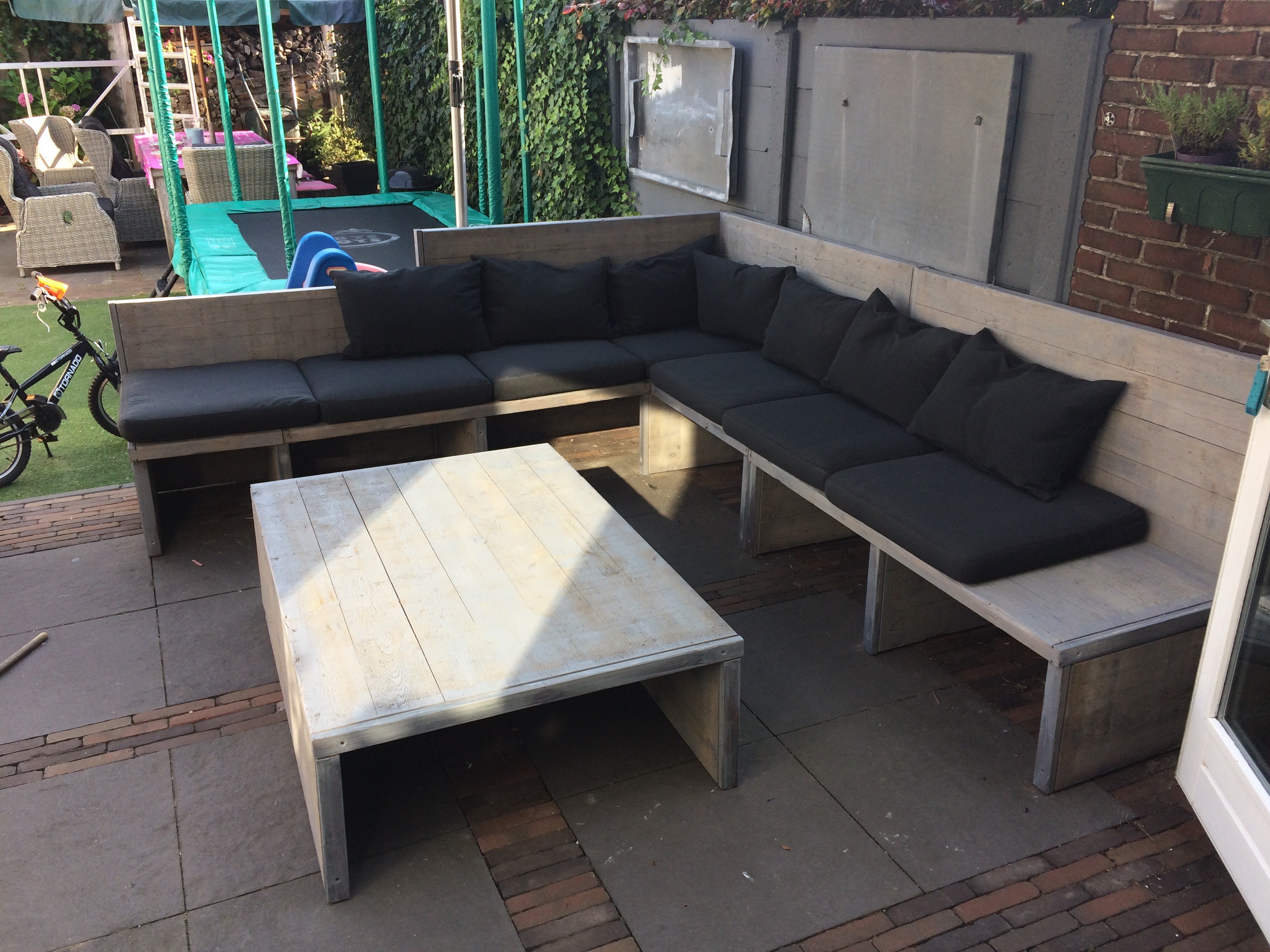 De klant wilde zijn opmaat gemaakt zijn eigen tuinmeubilair van steigerhout.